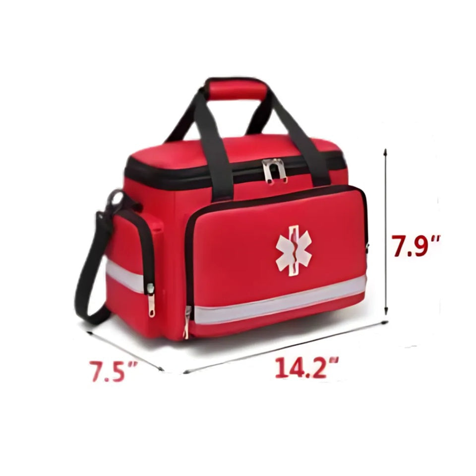Diseñado para uso profesional, su estructura amplia y funcional lo convierte en una excelente opción para paramédicos, ambulancias, brigadas de rescate, empresas e instituciones que requieren tener sus suministros siempre organizados y listos para actuar.